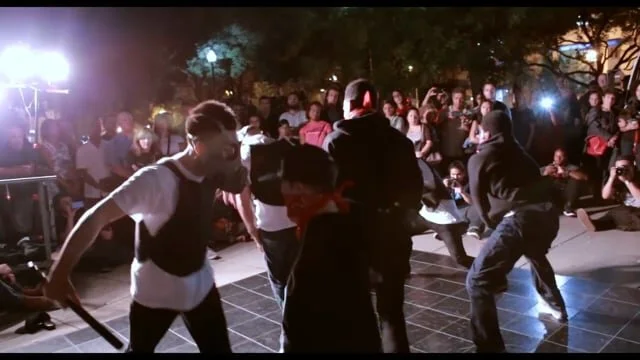 What does it look like when millennials take to the street? Moved by the physicality of rebellion, Pinder collaborated with a group of accomplished break dancers called The Lionz of Zion. The piece explored how breakdancing best captured the explosive nature of spontaneous protest. This performance featured acrobatics, gesturing to how athletic movement can be used as a way of creating conversations around social struggle. Employing intense police lights, minimal costuming, smoke, and music, the team of break dancers wove a loose narrative to produce a chilling effect.